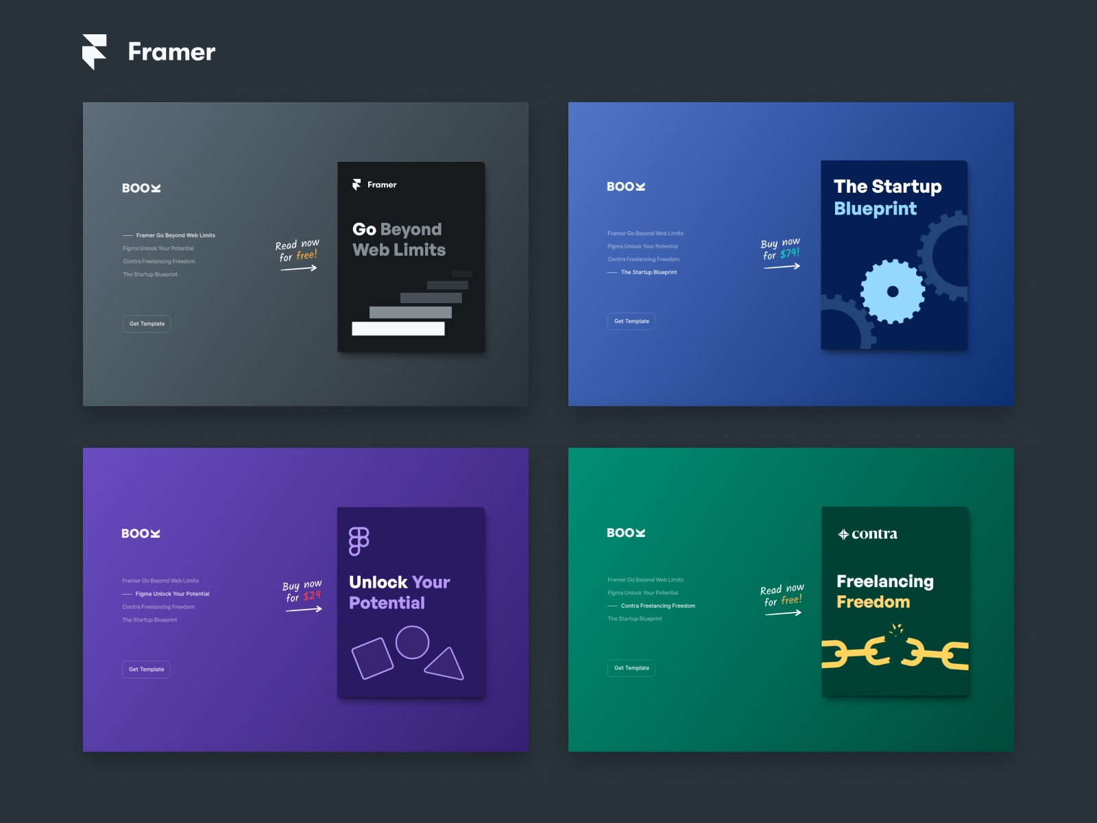 Book is a creative Framer template designed exclusively for authors. With smooth section scrolls, each book shines in its spotlight. Enjoy seamless navigation and personalized book cover design and animation options. Sell Your Books with Style! Seamlessly connect it to a domain to use as a standalone website or effortlessly integrate it as a page within your existing Framer website. Book Live Preview Features: The template includes one page: HomeRe-usable components such as buttons, animated shapes, and navigation items. The components are crafted to elevate the aesthetics and functionality of your projects.The template is fully responsive, eliminating the need to rebuild it for different devices. Upon completing your purchase, you will receive a PDF file containing the link to access the template.